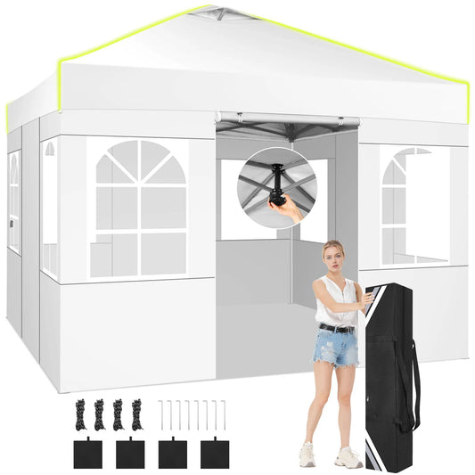 10x10 Pop Up Canopy Tent with 4 Sidewalls Waterproof Easy Set Up