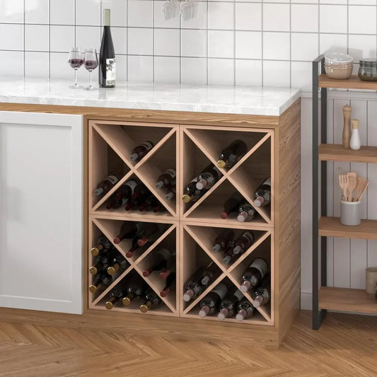 Wine Rack Wooden Countertop Storage Cube Freestanding Holder for 24 Bottles
