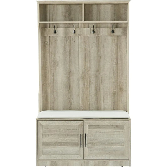 Wood Coat Rack Storage Shoe Cabinet with Clothes Hook and Sponge Pad