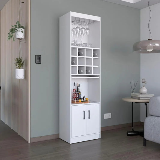 71.1 Inch Tall Bar Cabinet with 12-Bottle Cubbies and Glass Holder