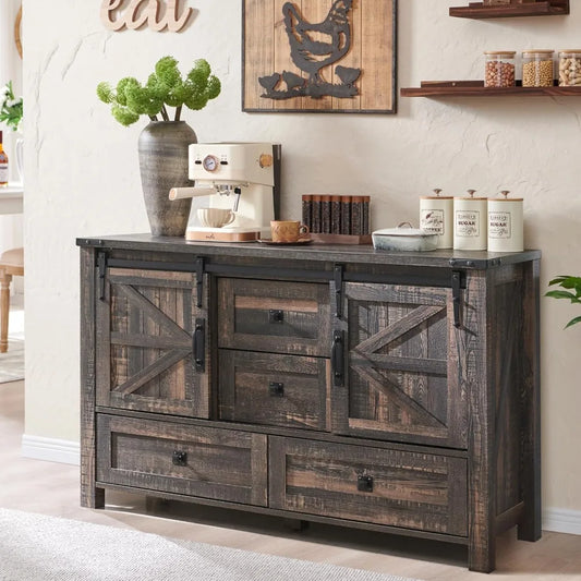 Farmhouse Buffet Cabinet with Sliding Barn Doors and Storage Drawers