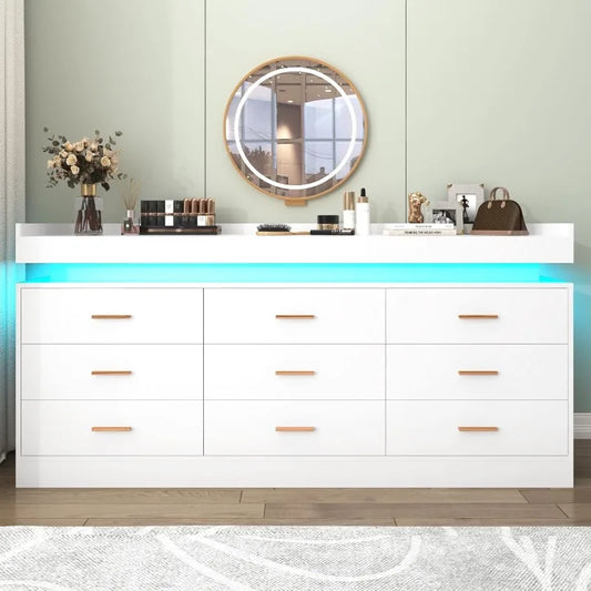 Modern 9 Drawer Dresser with LED Light and Charging Station