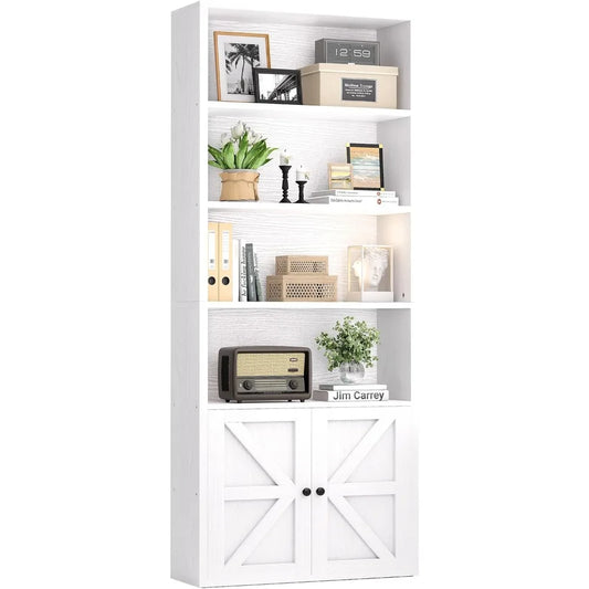 - 5 Tier Farmhouse Bookshelf Large Display Bookcase with Glass Doors