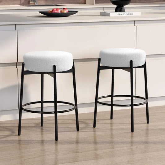 Swivel Round Barstools 24" Teddy Wool Upholstered Set of 2