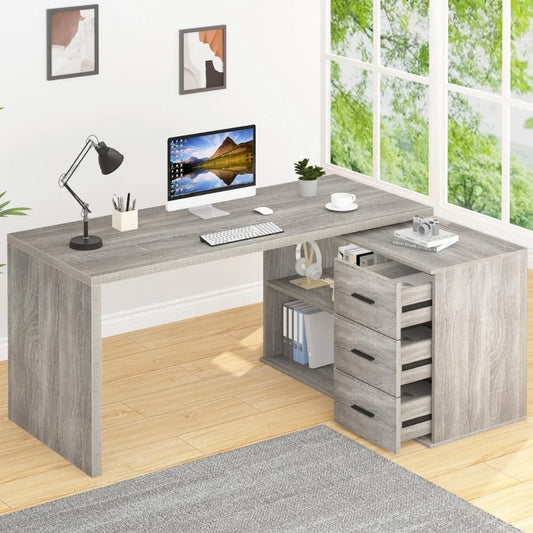 - L-Shaped Computer Desk with 3 Drawers for Home Office Small Space