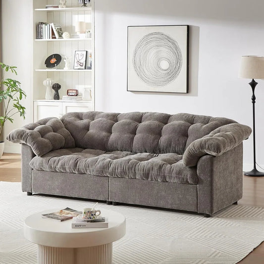 Ljustra Modern 99 Inch Chenille Tufted Sofa Couch with Armrest Pillows