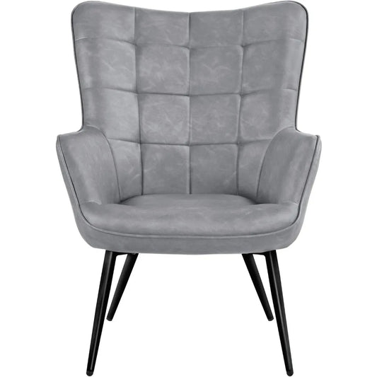 Living Room Faux Leather Accent Chair Tufted Armchair for Home Office