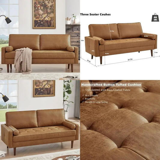 Mid Century Modern Faux Leather Loveseat Tufted Sofa with Pillows