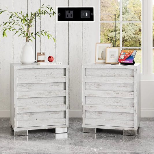 Nightstand Set of 2 with Charging Station Farmhouse Side Table