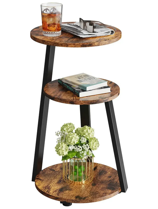 End Side Table Round Metal Frame 3-Tier Storage Coffee Table Nightstand