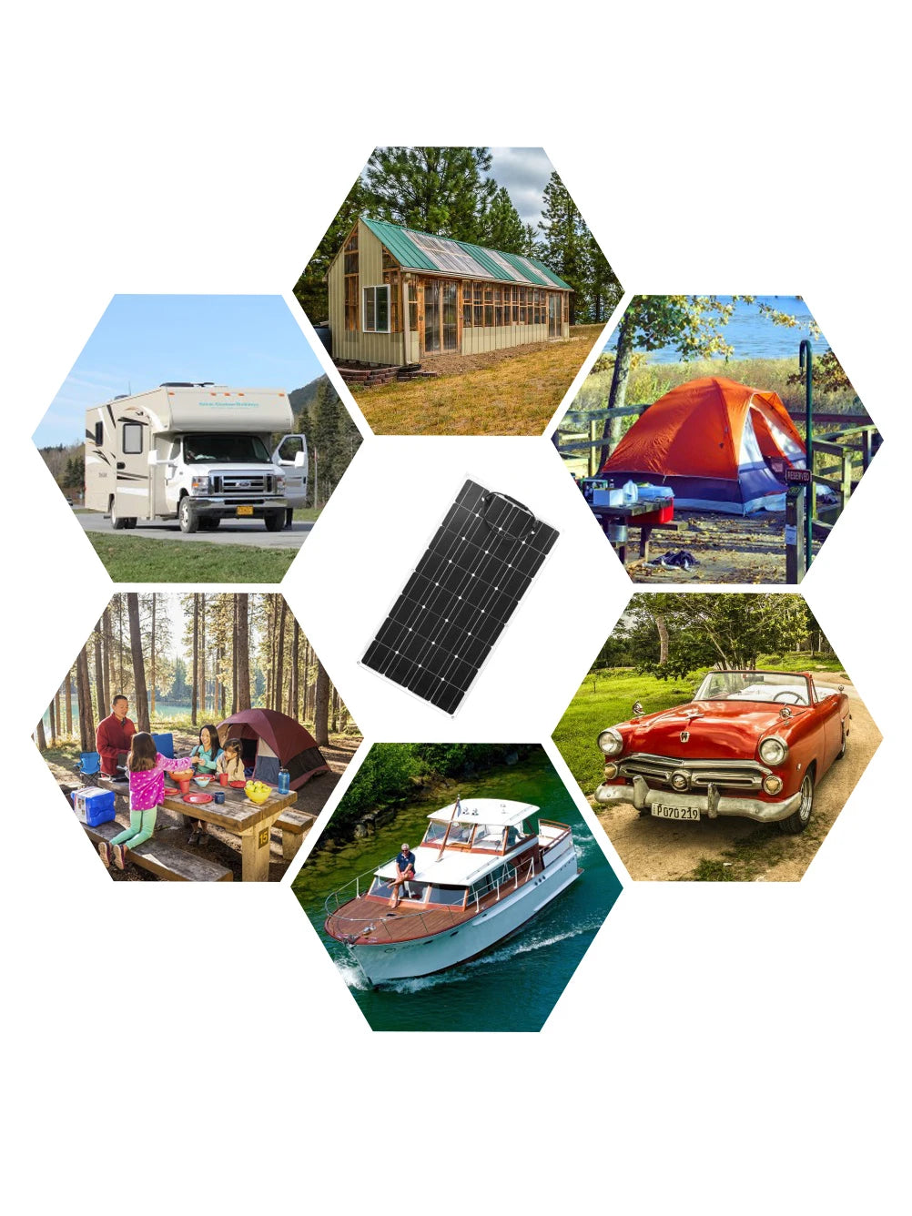- Flexible and Lightweight: Can be bent up to 30 degrees, making it ideal for mounting on irregular surfaces such as RV roofs, boats, and tents.