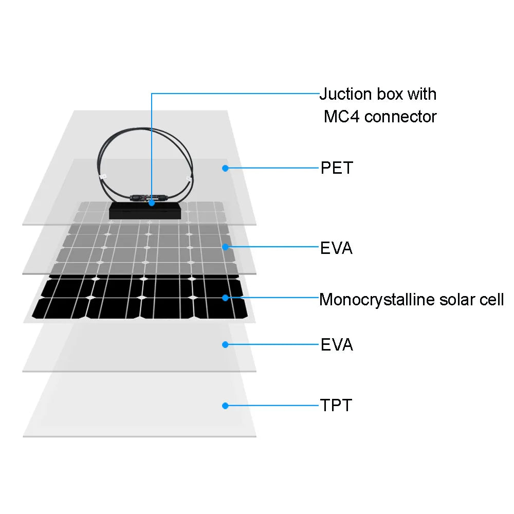 Experience the freedom of renewable energy with our 100 Watt Flexible Solar Panel. Designed for versatility and efficiency, this solar panel is perfect for anyone looking to power their adventures or home with clean energy.