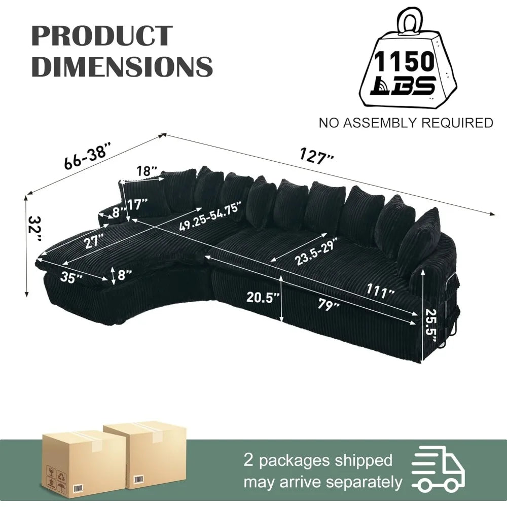 127” Curved L-Shaped Corduroy Sectional Sofa Deep Seat Cloud Couch w/ Pillows