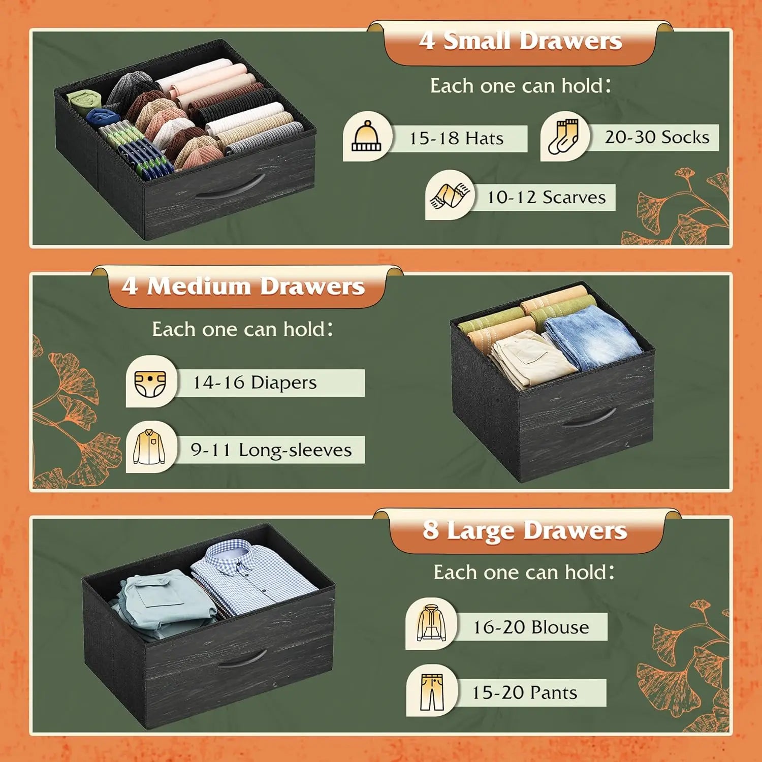 - šš©ššš¢šØš®š¬ šššØš«šš š šš©ššš & šš©ššš šššÆš¢š§š ššš¬š¢š š§: This 16-drawer tall dresser not only has a space-saving design but also has 16 foldable deep fabric drawers to provide plenty of storage space. The chest of drawers offers drawers of 3 different sizes for you to classify storage clothes, pants, socks, toys, books, thin blankets, and other items.