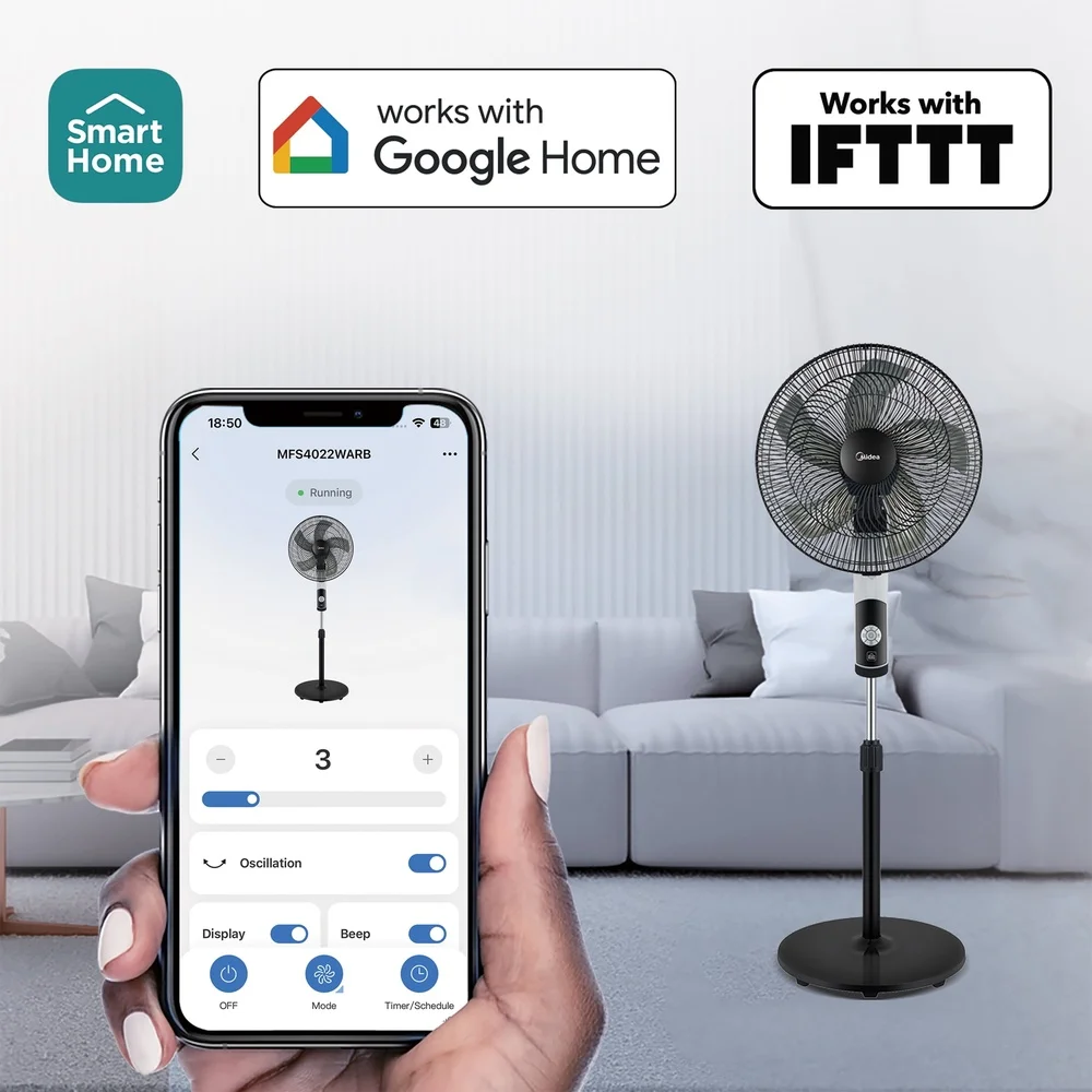 With 12 speed settings, a 12-hour programmable timer, adjustable height, and 4 fan modes, you can customize your cooling to match your needs. With the ultra-quiet DC motor, you can keep cool while reading a book, watching your favorite movie, or enjoying undisturbed sleep. This Smart Fan is Wi-Fi enabled with the MSmartHome App. Voice controls are available with Alexa and Google Assistant Devices. Along with the smart features, this fan can also be controlled with the easy-to-read LED display and included remote control.