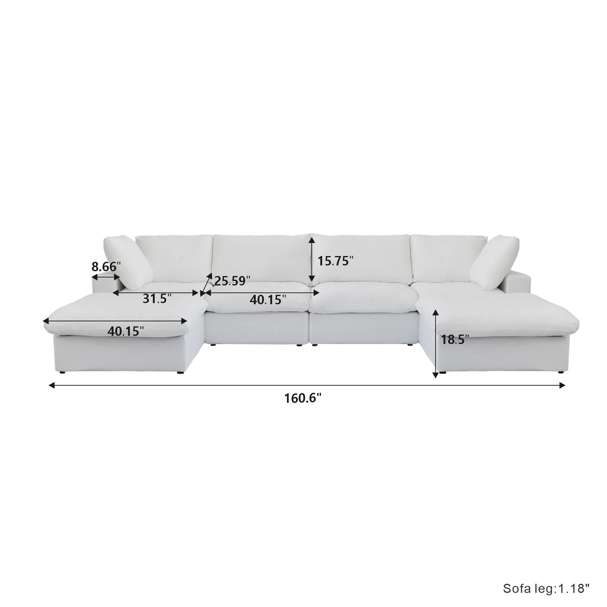 160” U-Shaped Modular Cloud Couch 6 Seat Sectional w/ Storage & Removable Covers