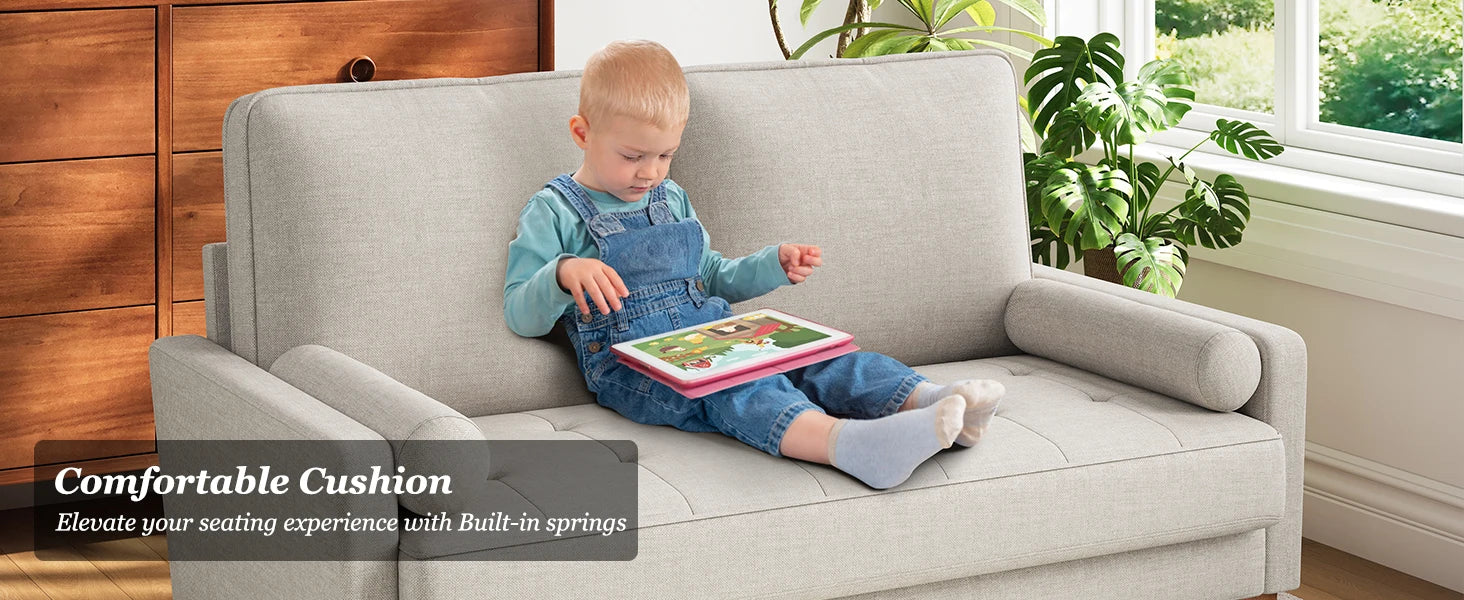 Modern 48" Linen Loveseat Sofa 2-Seater Couch with Pillow for Small Spaces Apartment