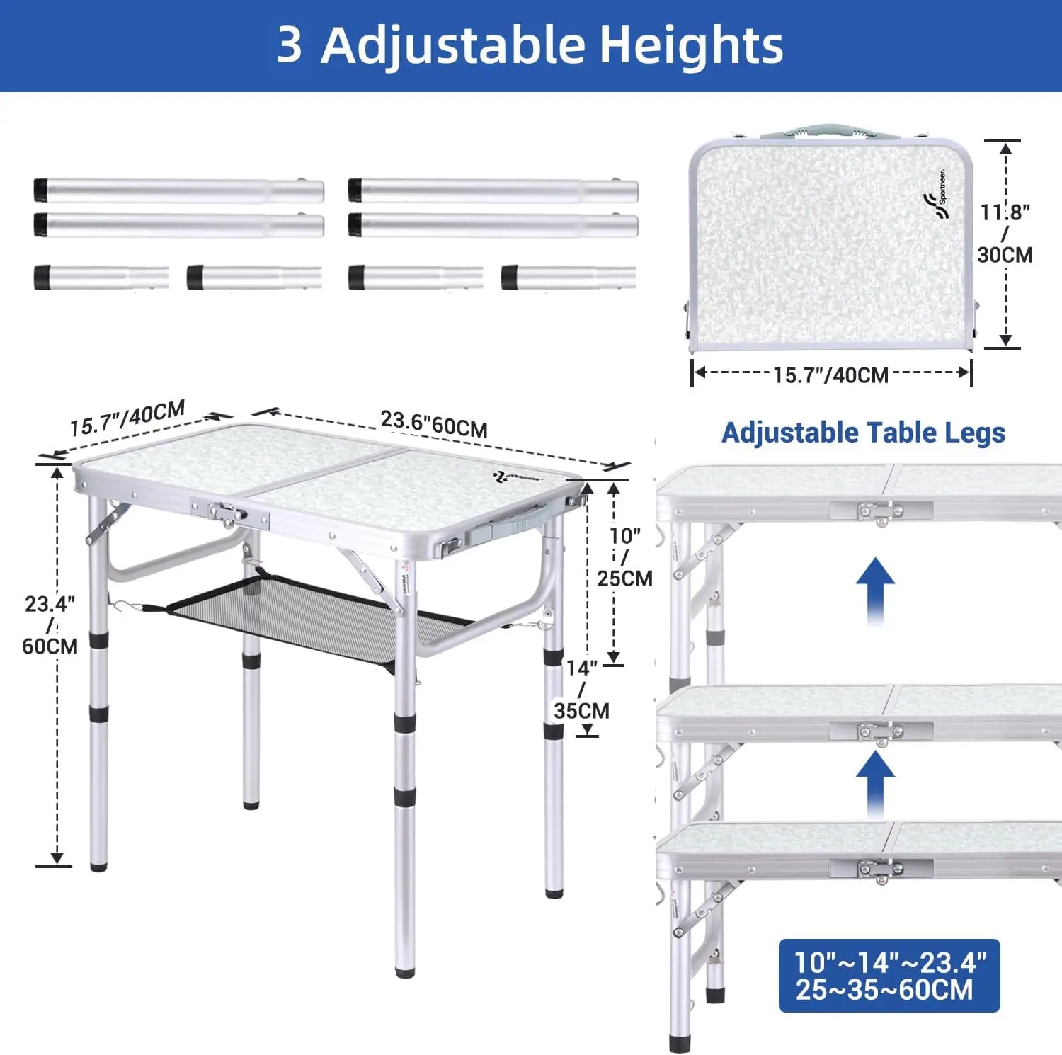 Enhance your outdoor adventures with the Ljustra Adjustable Height Camping Table. This compact and portable folding table is designed to meet all your camping, picnic, and backyard BBQ needs!