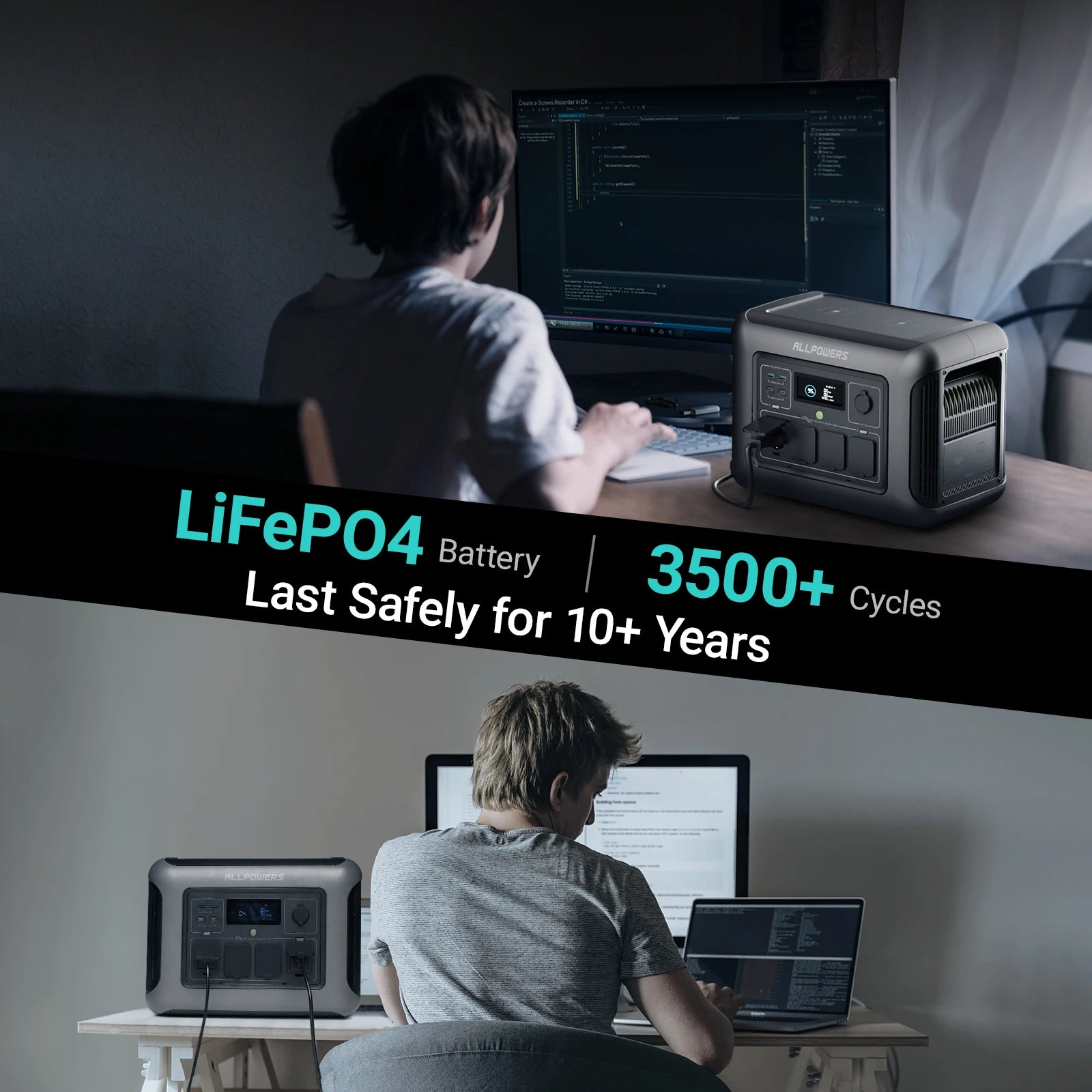 The ALLPOWERS R1500 Portable Power Station is your ultimate power solution for outdoor adventures, emergency situations, and home backup. With a massive 1152Wh capacity and advanced LiFePO4 battery, this reliable power station ensures you never run out of energy when you need it most.