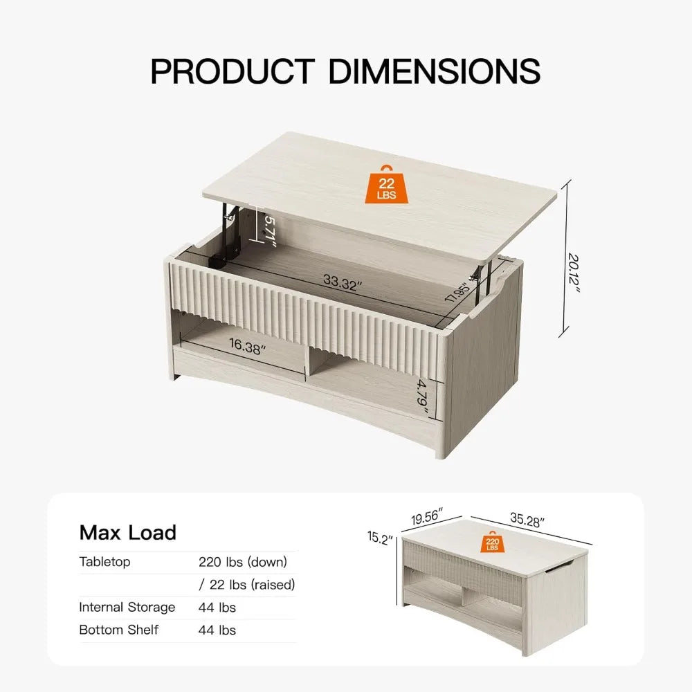 - Ample Storage: With a spacious tabletop measuring 35.28" x 19.56", a hidden compartment under the lift-top, and two open shelves, this table offers maximum organization for your living space.