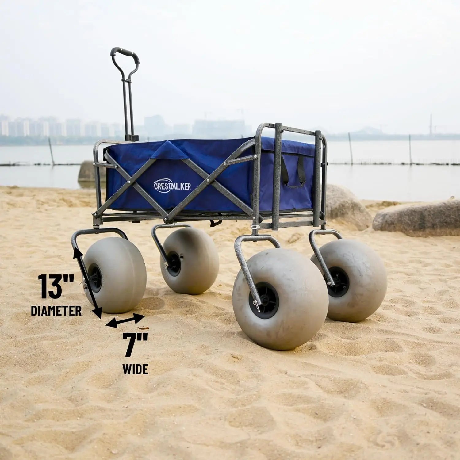Beach Cart Collapsible Wagon with 13 Inch Balloon Wheels Pump Included