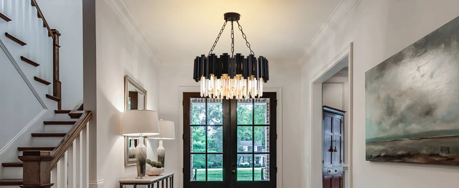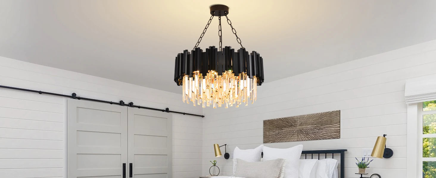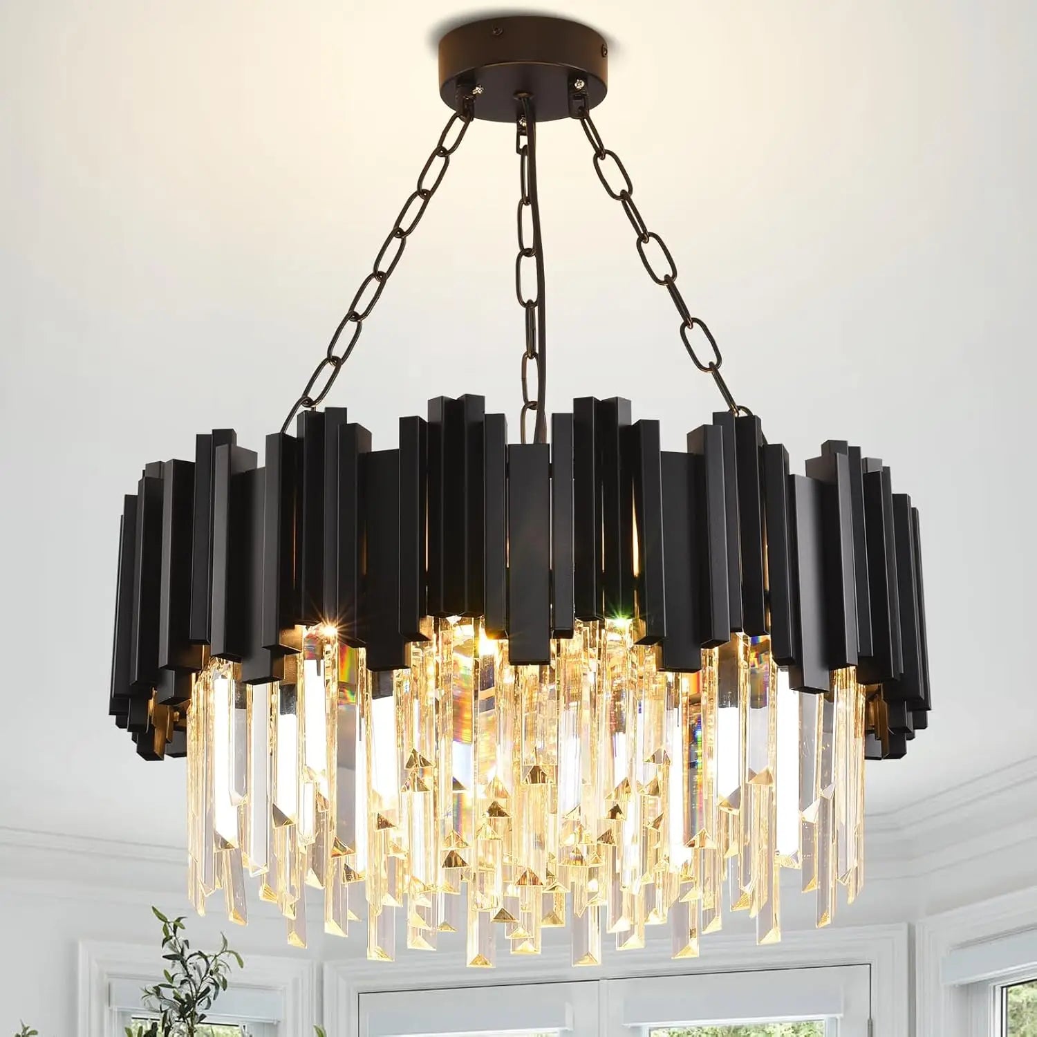 Illuminate Your Space with Ljustra's Modern Black Crystal Chandelier