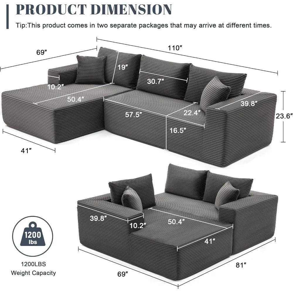 - Product Dimensions: 69"D x 110"W x 23.6"H