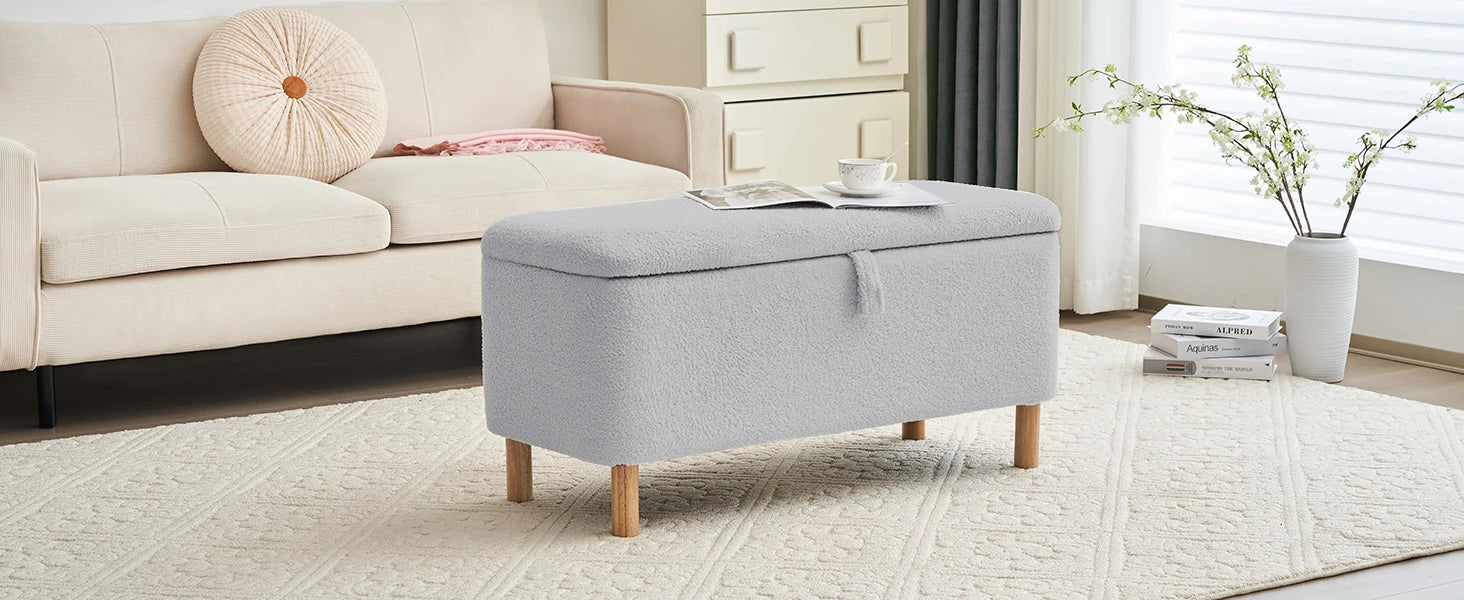 Transform Your Space with Ljustra's Boucle Storage Ottoman Bench