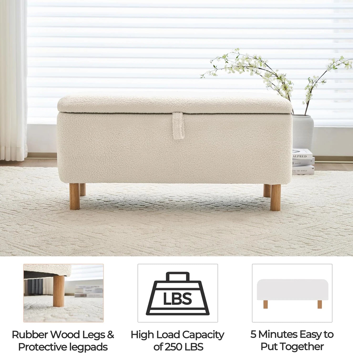 Boucle Storage Ottoman Bench for Bedroom Entryway Home Decor