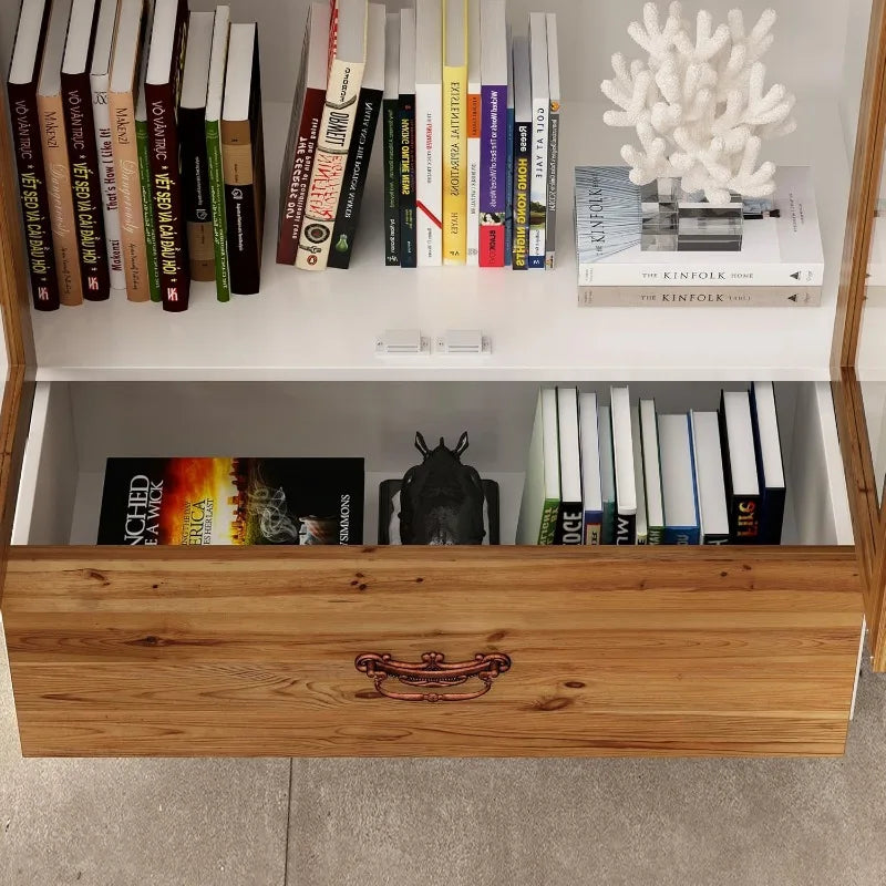 Carved Storage Cabinet 2 Glass Doors Drawer Living Room Furniture