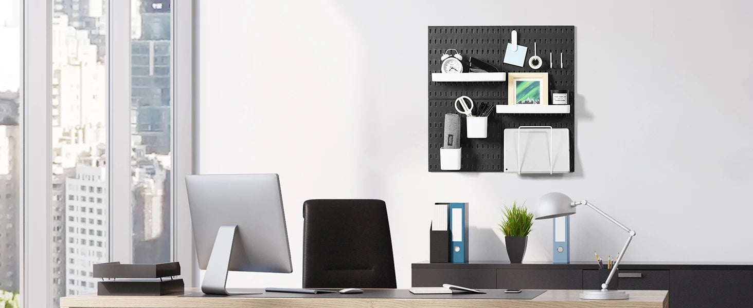 This organizer kit not only offers functionality but also enhances the aesthetic of your space. With 17 accessories included, you can hang various items, from toiletries to tools, keeping everything neatly in place. Its modern and minimalist design complements any decor, ensuring your space remains stylish while being practical.