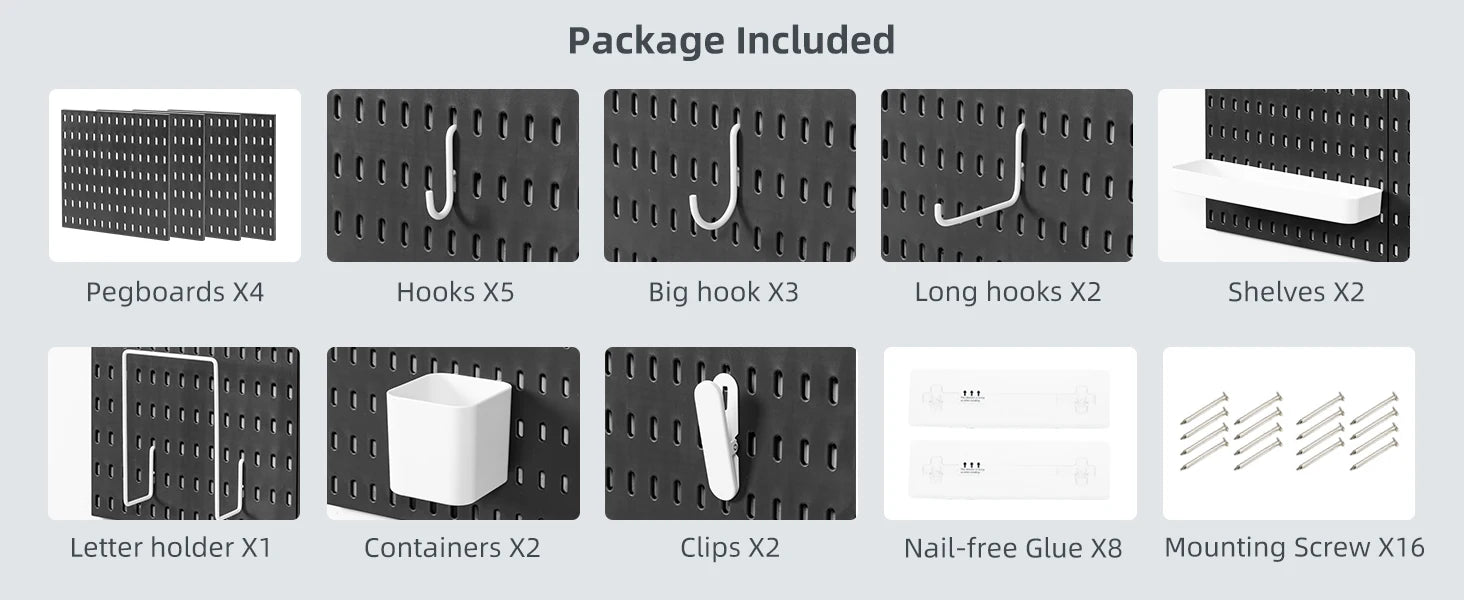 Deli 4pcs 22x22 Wall Organizer Kit with 17 Accessories for Storage