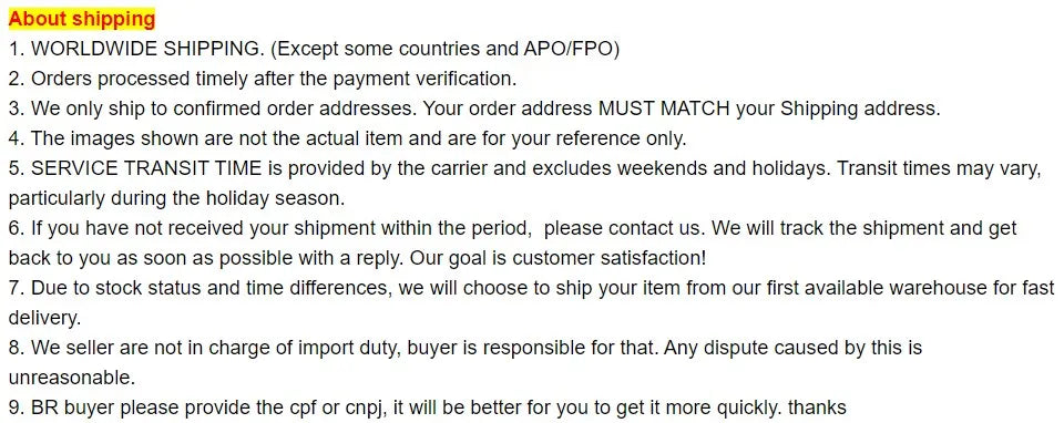 Specifications: