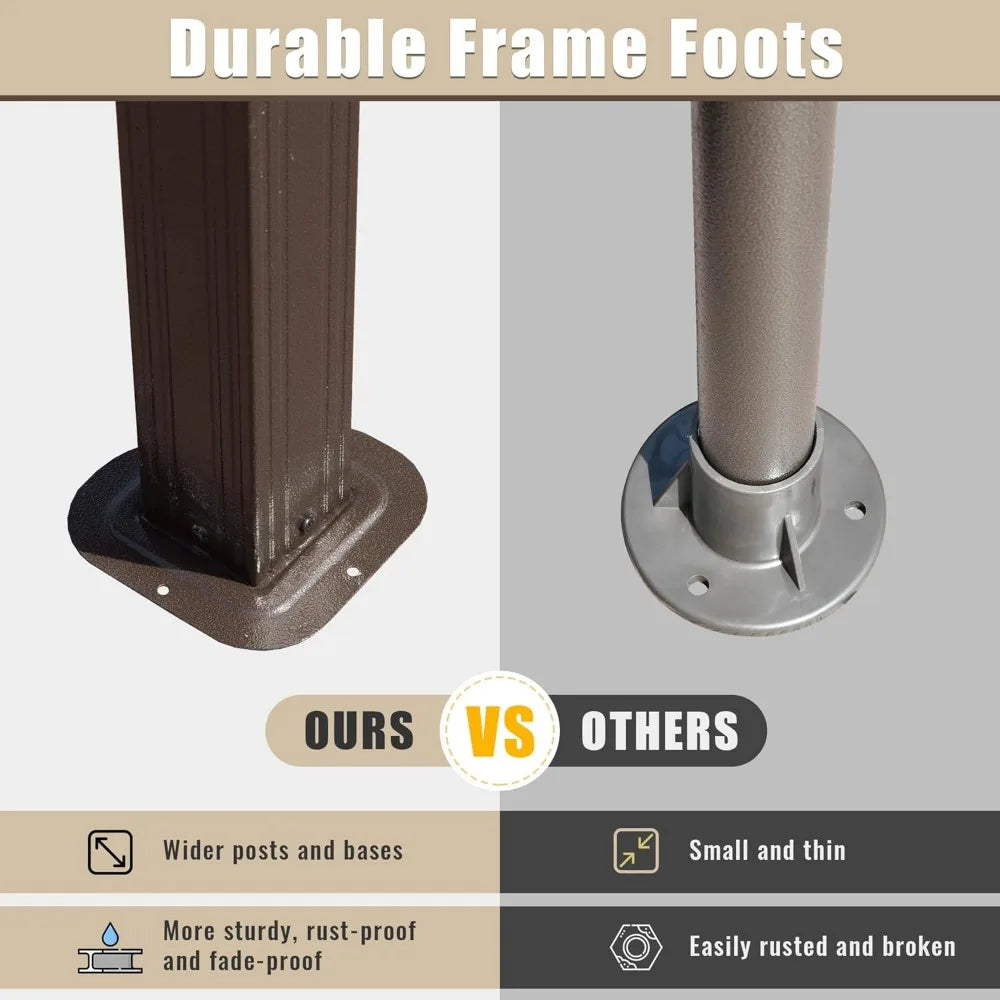 - Sturdy Design: With wider bases and sturdier columns, this gazebo offers stable support and adaptability for various ground types, ensuring safety during use.