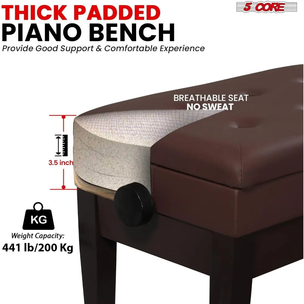 Duet Piano Bench Storage Height Adjustable Wooden Keyboard Stool