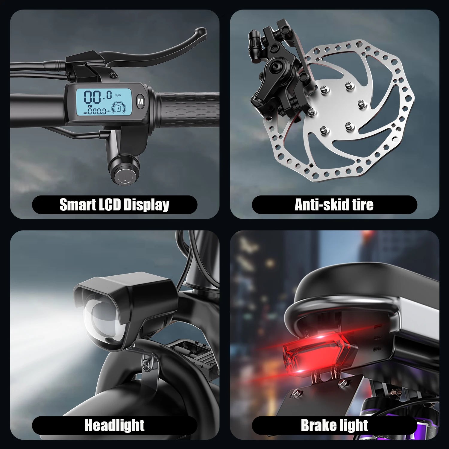 - Versatile Terrain Handling: Equipped with 14" fat tires, easily navigate through beach, snow, and gravel roads.