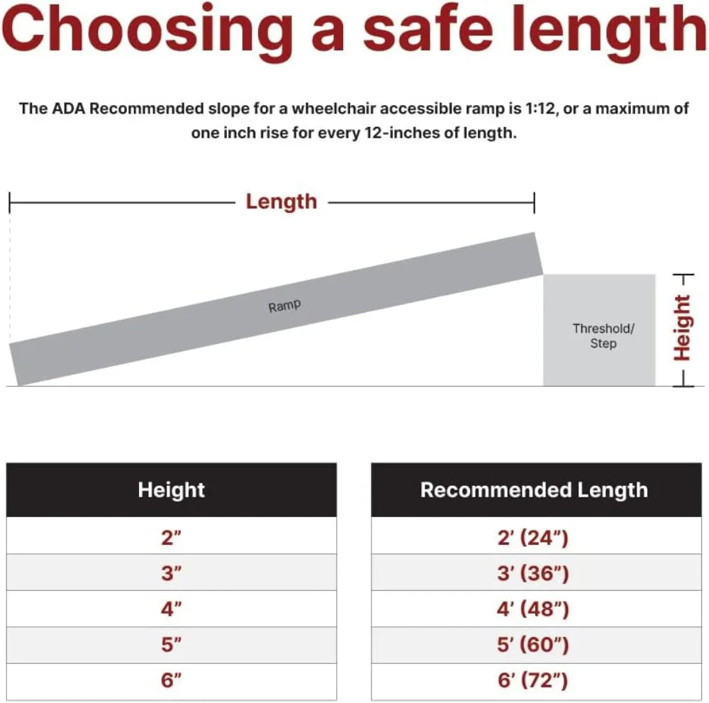 - Innovative Design: Equipped with two legs that allow the ramp to butt up against raised surfaces or doorways without obstructing doors.