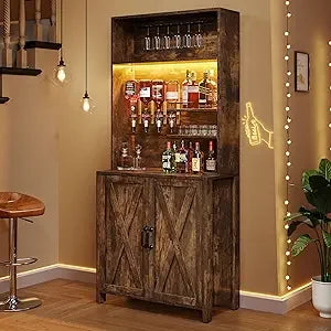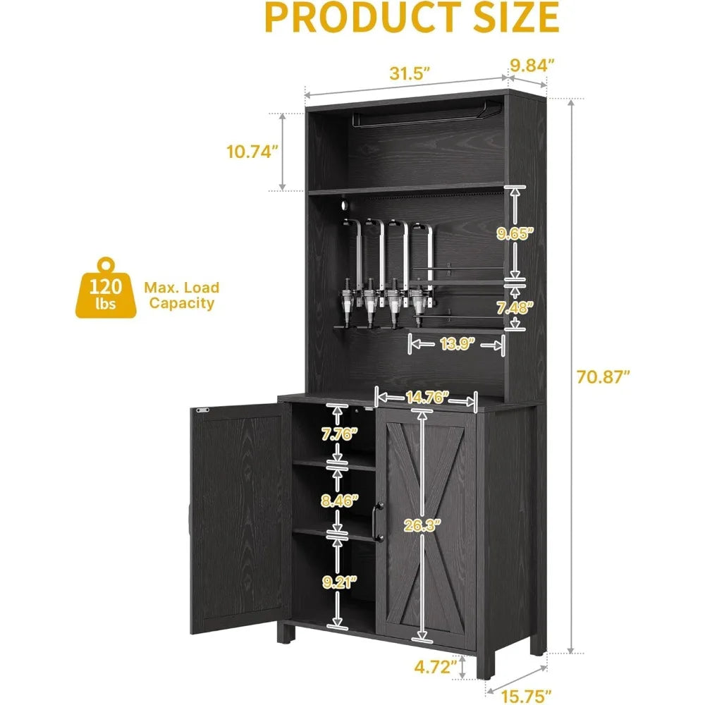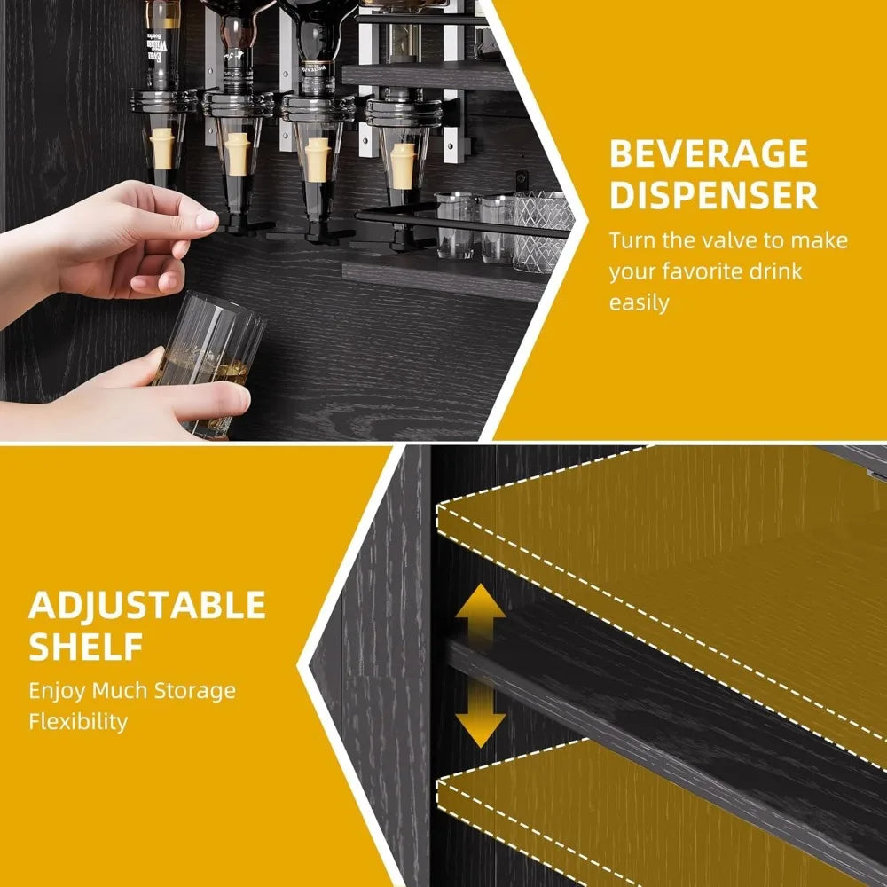 - All-in-One Design: This tall bar cabinet combines a wine rack, glass rack, beverage dispenser, and storage, making it suitable for various uses including as a coffee bar or buffet cabinet.