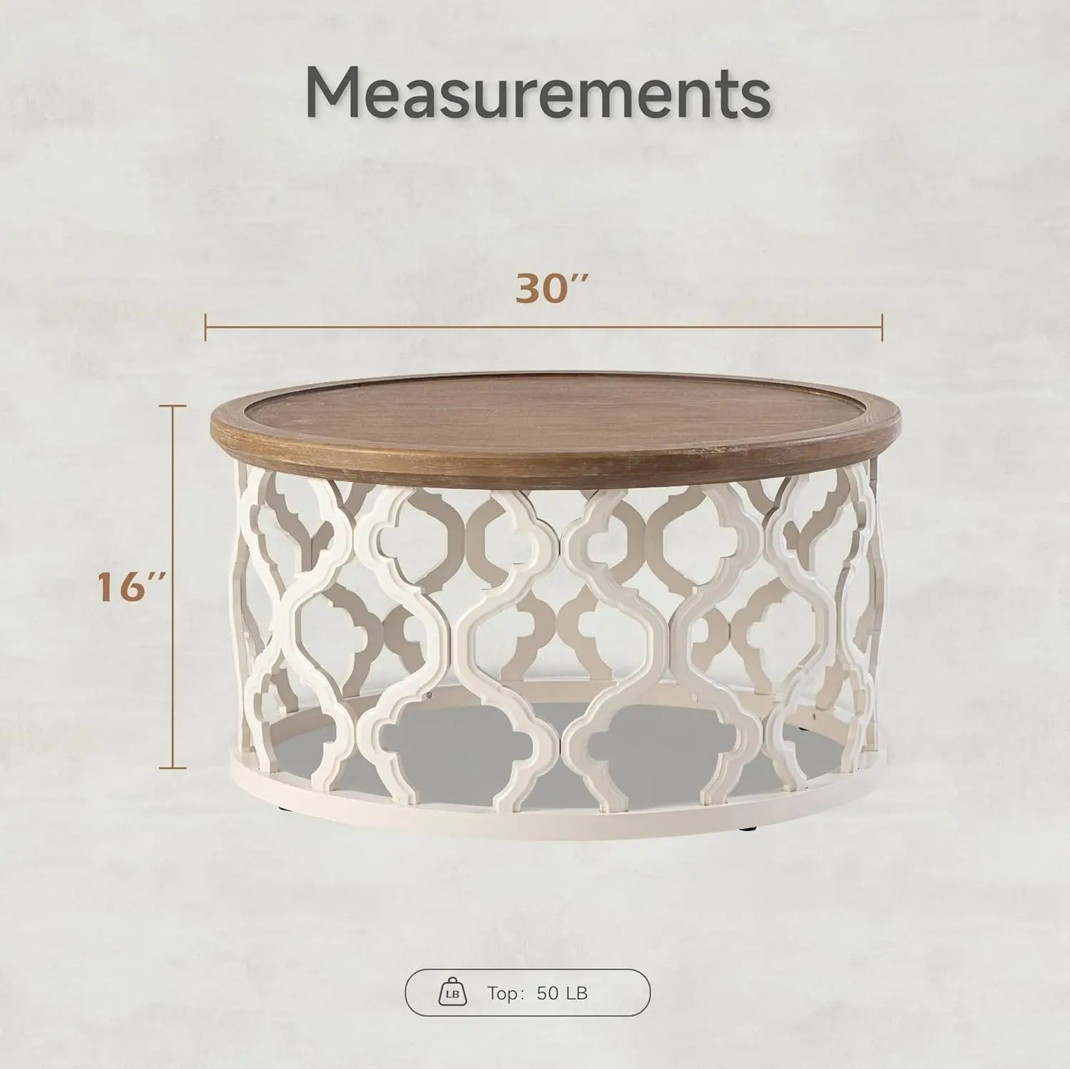 Farmhouse Coffee Table Distressed Tray Top Round Table for Rustic Decor