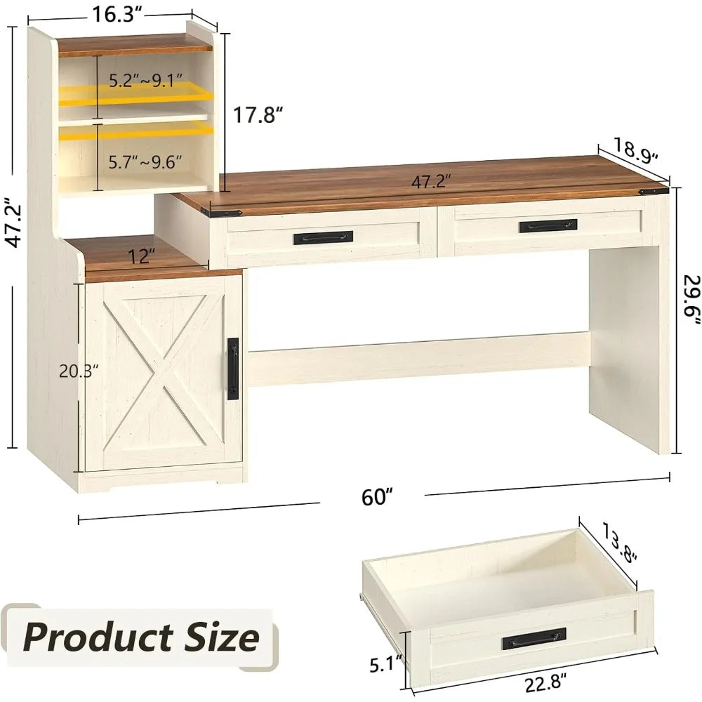 Farmhouse Computer Desk with Drawers and Shelves Home Office Furniture