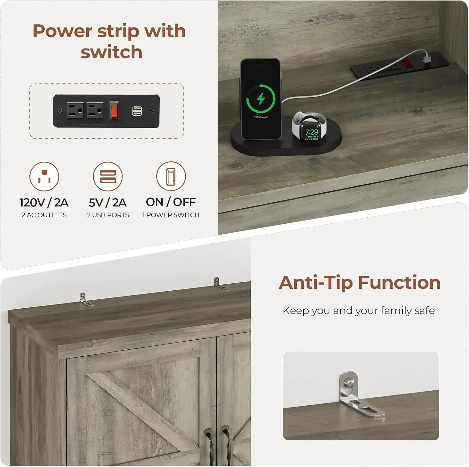 - Convenient Charging Station: Built-in charging board with 2 AC plugs and 2 USB ports for your devices.