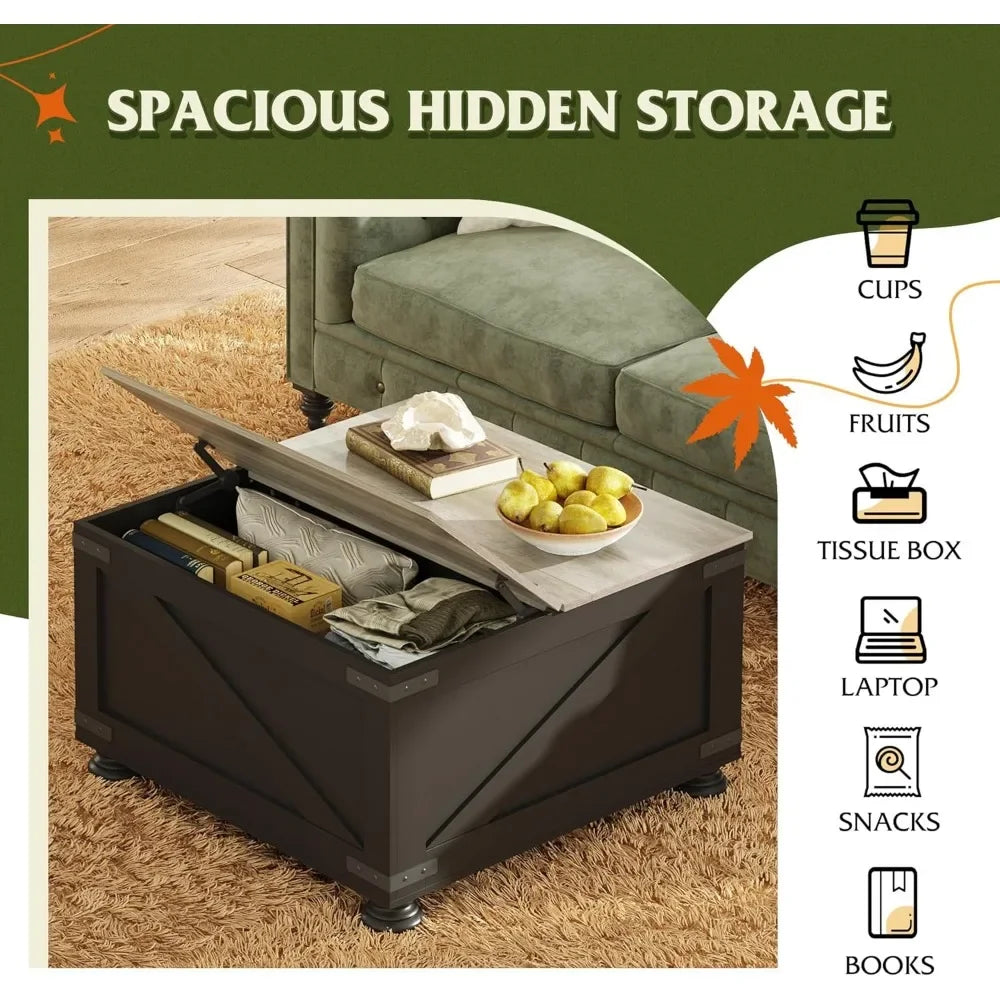 Introducing the Ljustra Farmhouse Lift Top Coffee Table - where rustic charm meets modern functionality. This stunning square coffee table is designed to elevate your living room, home office, or bedroom with its unique blend of style and practicality.