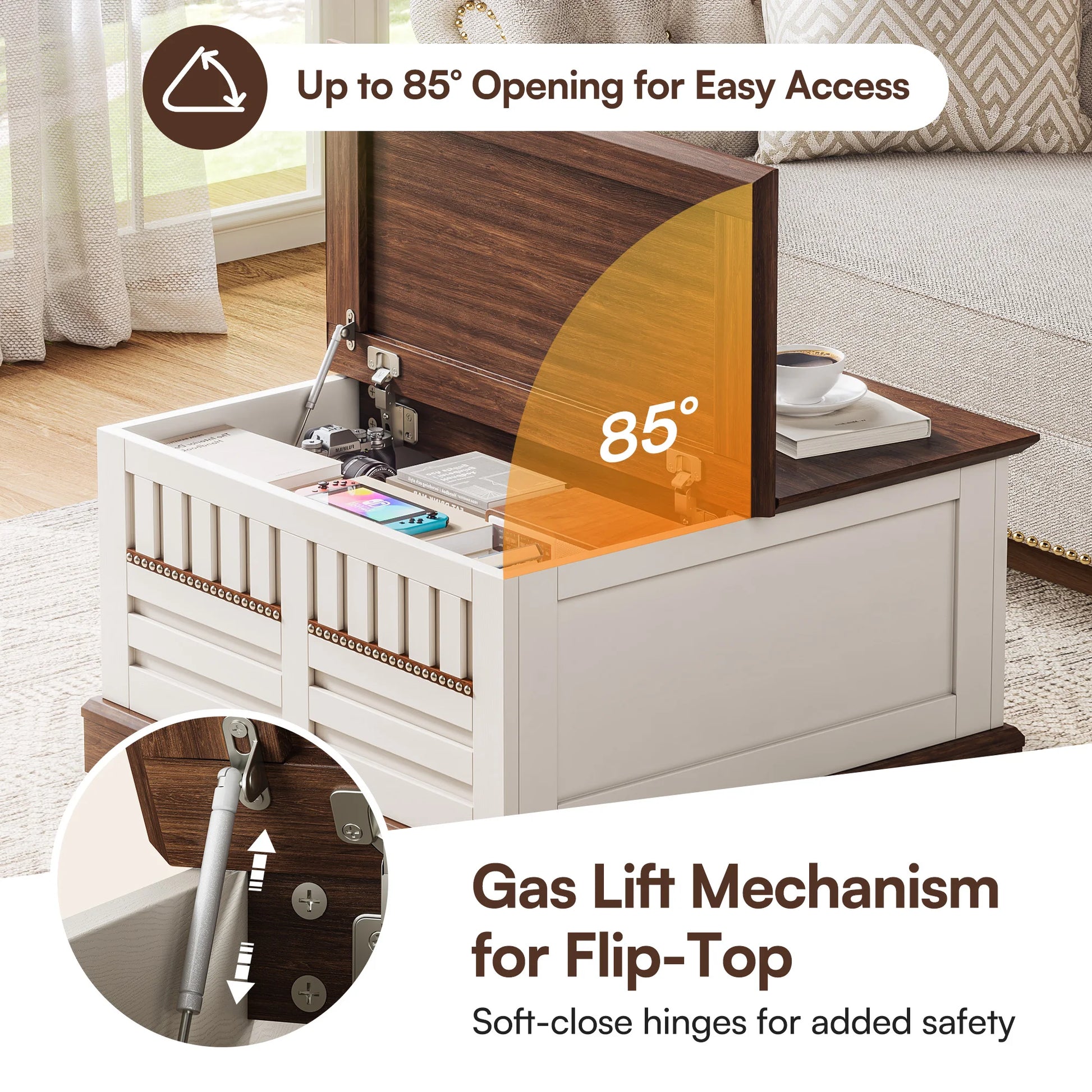 - Lift Top Mechanism: Easily converts into a workspace or dining area, perfect for multitasking.