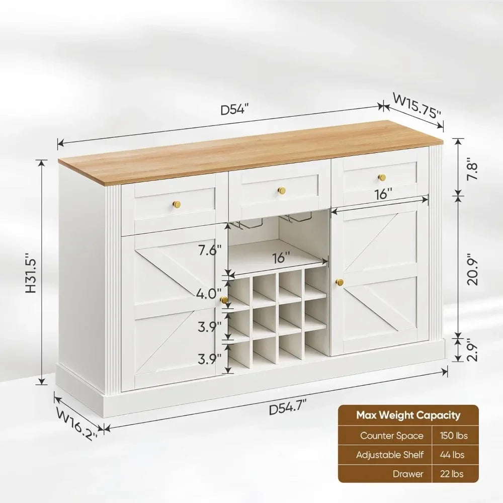 Farmhouse Wine Bar Cabinet with Wine Rack and Glass Holder 54 Inches