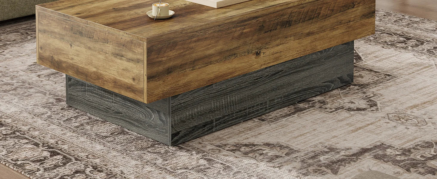 - Rustic Aesthetic: Featuring a charming rustic brown tabletop paired with a stylish grey base, this coffee table seamlessly blends farmhouse appeal with modern elegance, enhancing your living room decor.