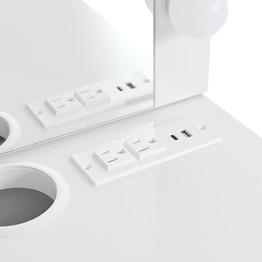 - Convenient Charging Port: With 1 USB, 1 Type-C, and 2 outlets available, you can charge devices easily while using the vanity.
