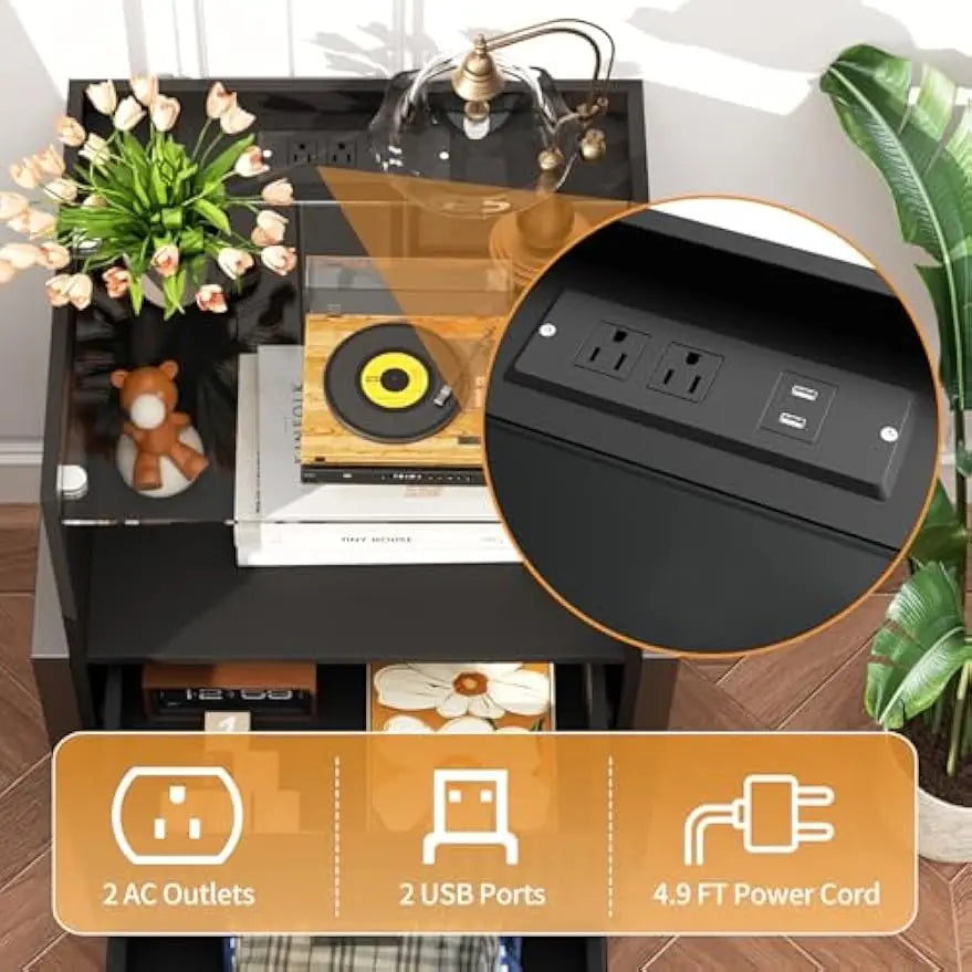 - Convenient Charging Station: Equipped with 2 USB ports and 2 AC outlets, keeping your devices charged and within reach.