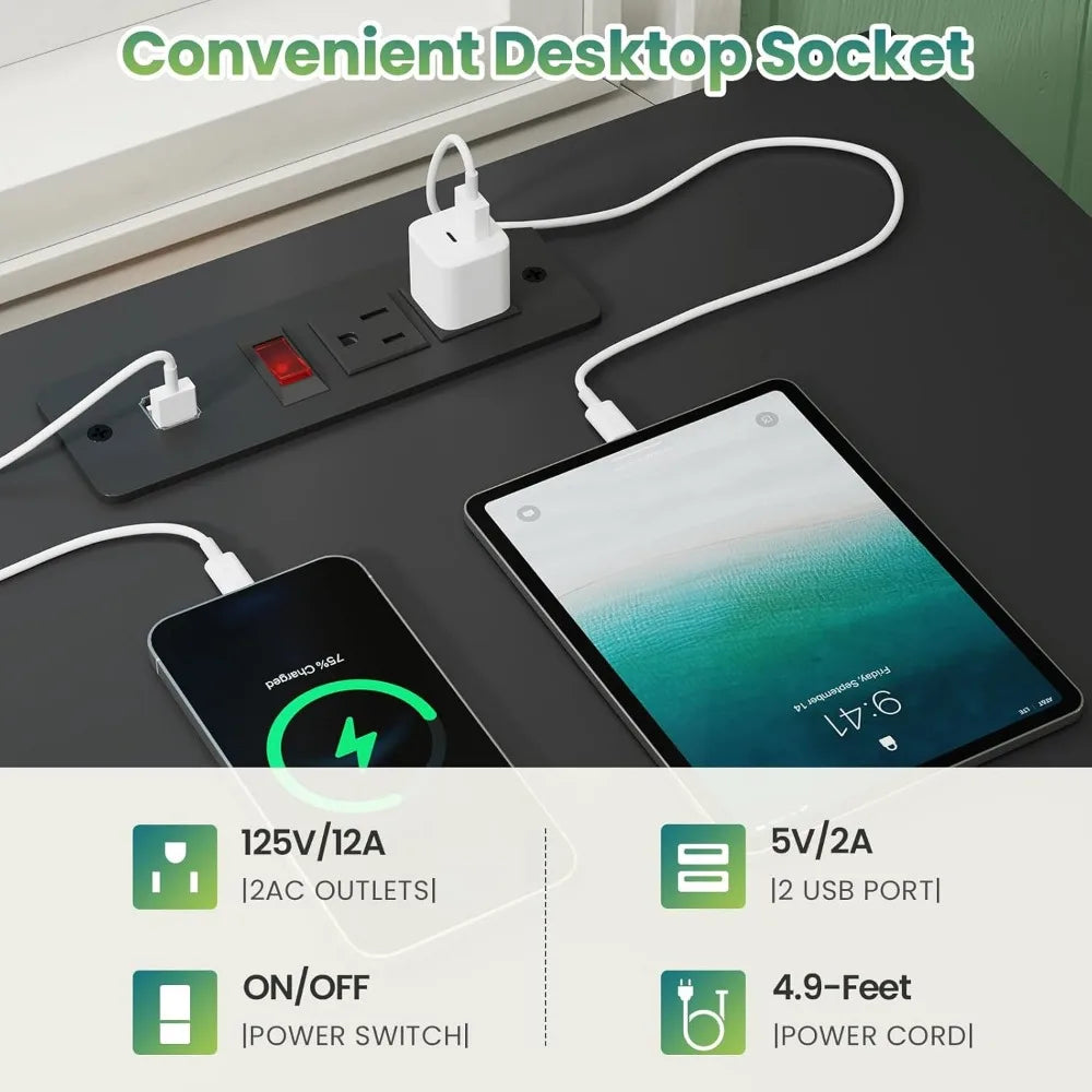 - Convenient Charging Station: Equipped with a built-in charging station featuring 2 USB ports and 2 sockets, keeping all your devices charged and within reach.