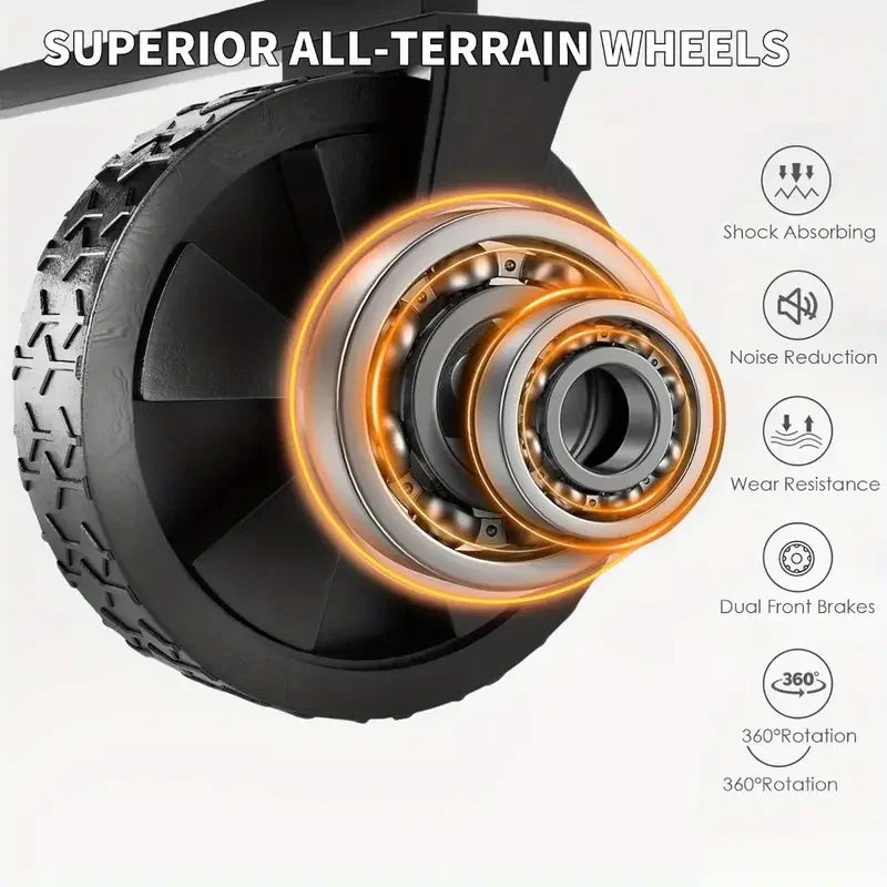 - Effortless Maneuverability: Equipped with terrain wheels for smooth movement on various surfaces.