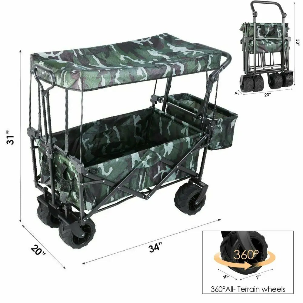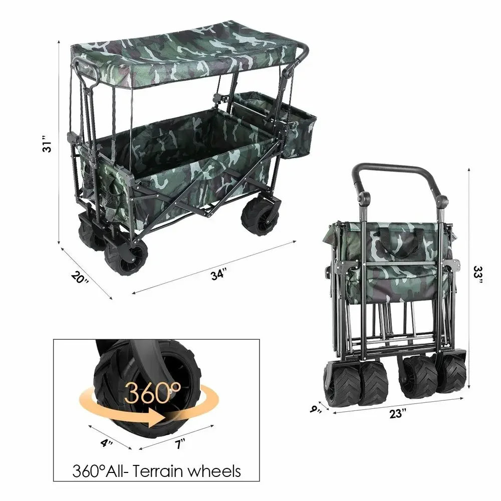 Foldable Handcart with Roof 115kg Off-Road Transport Trolley